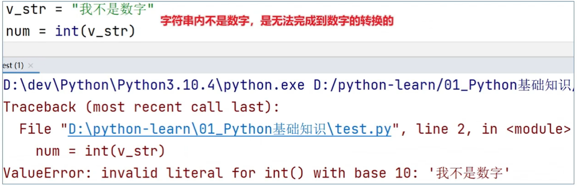 - 字符串内必须全部是数字才能转换为数字类型