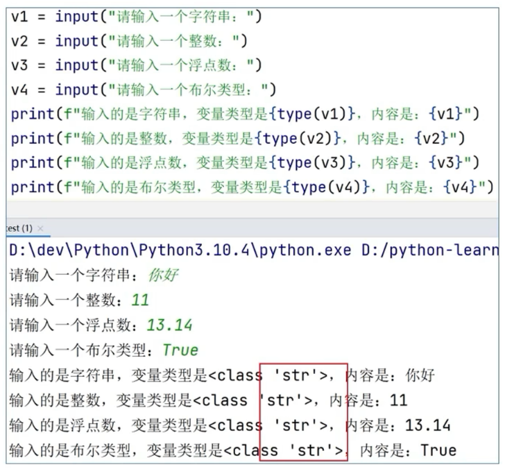 无论键盘输入何种类型的数据, 最终的结果都是: 字符串类型的数据