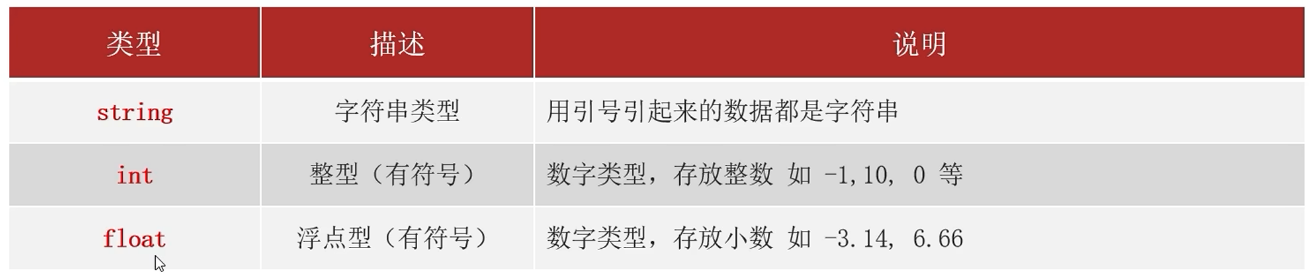 目前在入门阶段,我们主要接触如下三类数据类型: