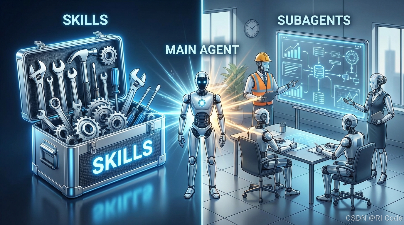 这时候,我们通常会寻求"扩展"Agent 的能力。但在当前的 AI 架构语境下,这种扩展主要通过两条路径实现:赋予它更多的 Skills(技能/工具) ,或者雇佣更多的 SubAgents(子智能体)。
