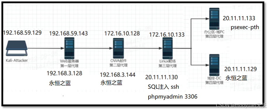| 第4层 | 核心网络 | 客户端PC | Vmnet12: 20.11.11.133 | 次要目标,用户工作站 | 🔴 横向扩展目标 |