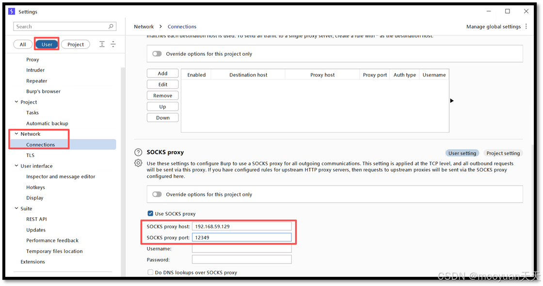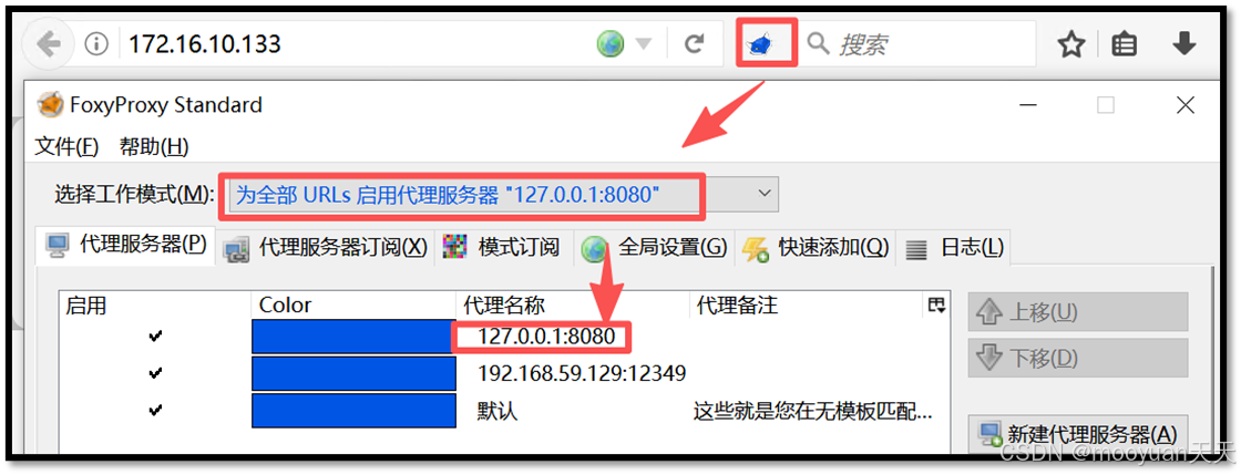 具体步骤如下所示:本机浏览器 -> burpsuite(127.0.0.1:8080) ->代理服务器(192.168.59.129:12349) -> 目标服务器。