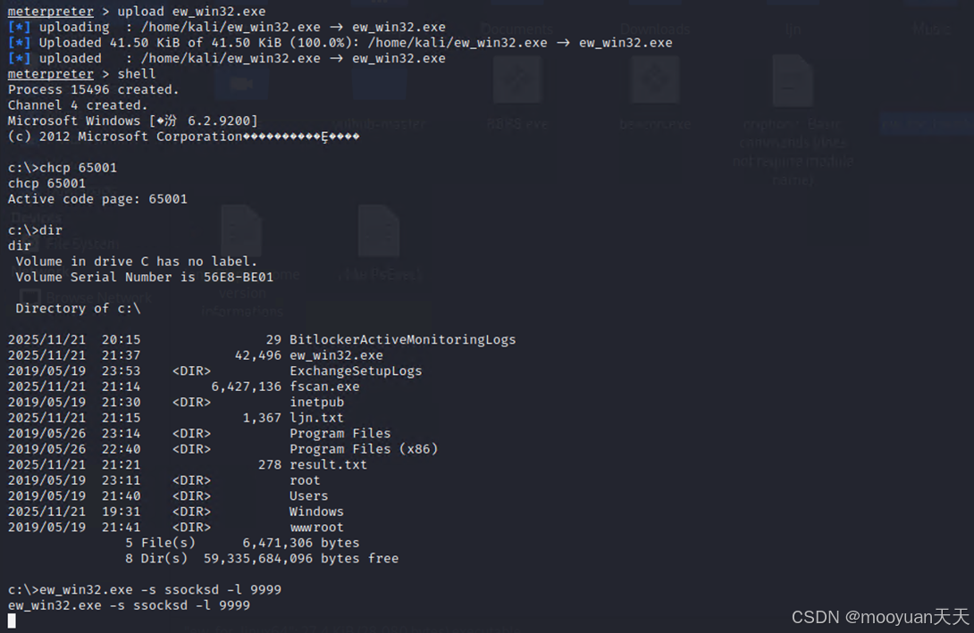 K->>A: 上传并执行<br>ew_win32.exe -s ssocksd -l 9999