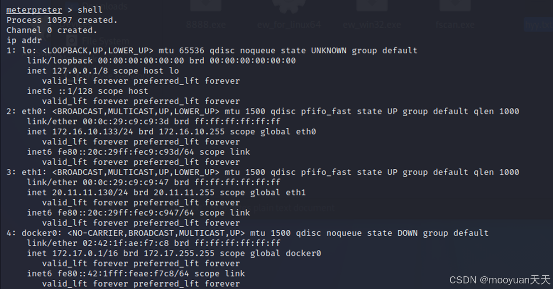 最终执行攻击,利用该漏洞在目标Linux服务器上实现远程代码执行,建立Meterpreter会话,为后续深入内网渗透建立关键立足点,如下所示渗透成功。