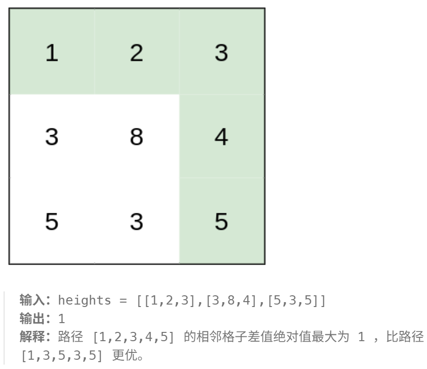 最小化 从左上角走到右下角路径上相邻格子之间 高度差绝对值的最大值。