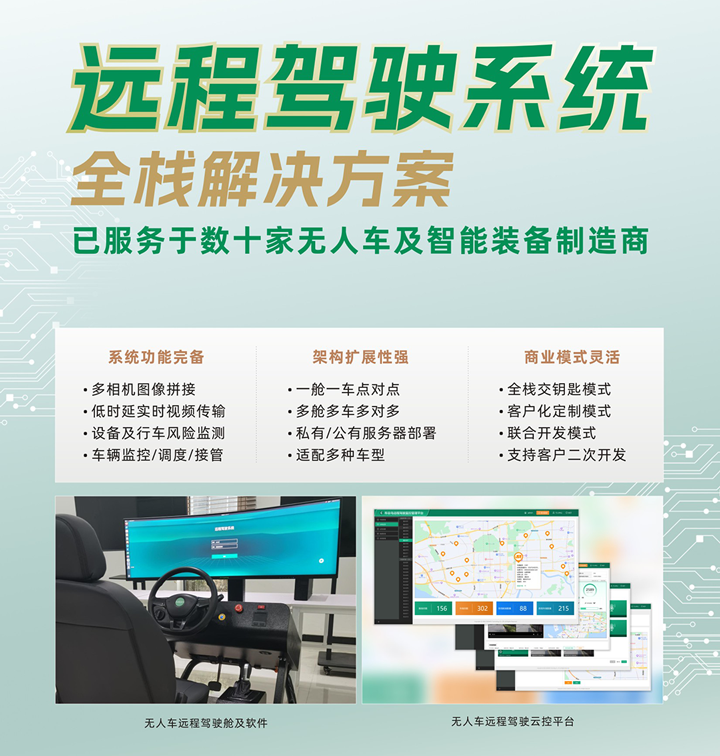 AutoWheel-远程驾驶系统,已广泛应用于"无人车租车、无人物流车、无人环卫车、无人工程机械"等车辆及应用场景。布谷鸟科技,提供系统软硬件全栈解决方案,可按照"一人一舱,一舱多车"的配置,解决自动驾驶车辆在复杂场景下的远程驾驶、远程管理、远程运维,提升系统安全性,提升运营效率,降低运营成本,形成无人驾驶商业闭环。