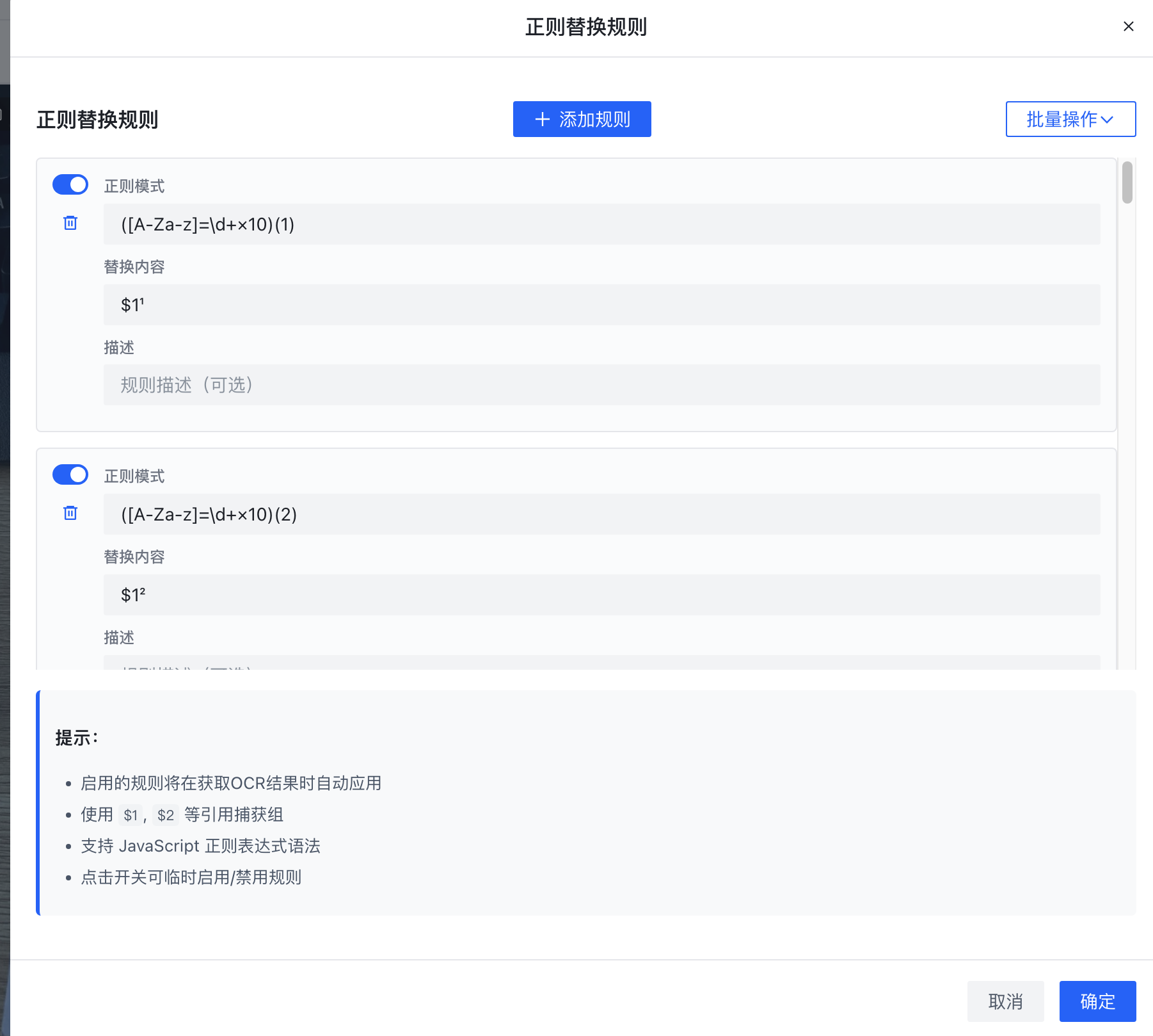 生僻字配置规则 :支持自定义生僻字修正方案,精准修正专业文档中特殊字符的识别错误,解决行业专属术语识别难题。