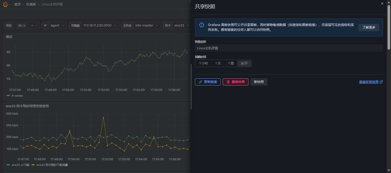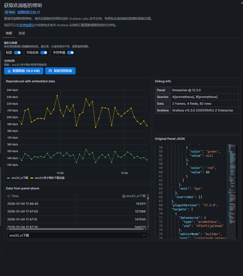 把当前面板查询的原始数据、面板 JSON、时间区间等一次性打包,生成一个脱敏快照 (Snapshot)。