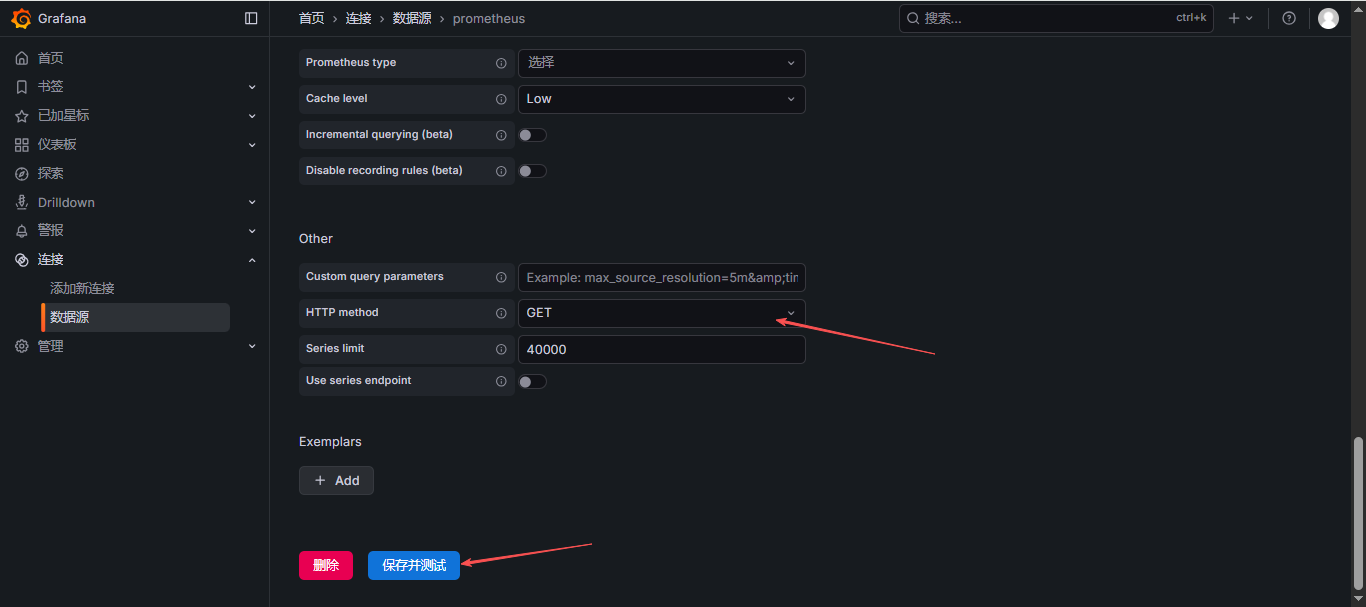 - [一、 配置 Prometheus 数据源](#一、 配置 Prometheus 数据源)