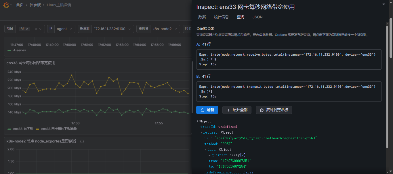 查看当前面板的promql语法,并可以在这里进行测试而不影响面板本身;