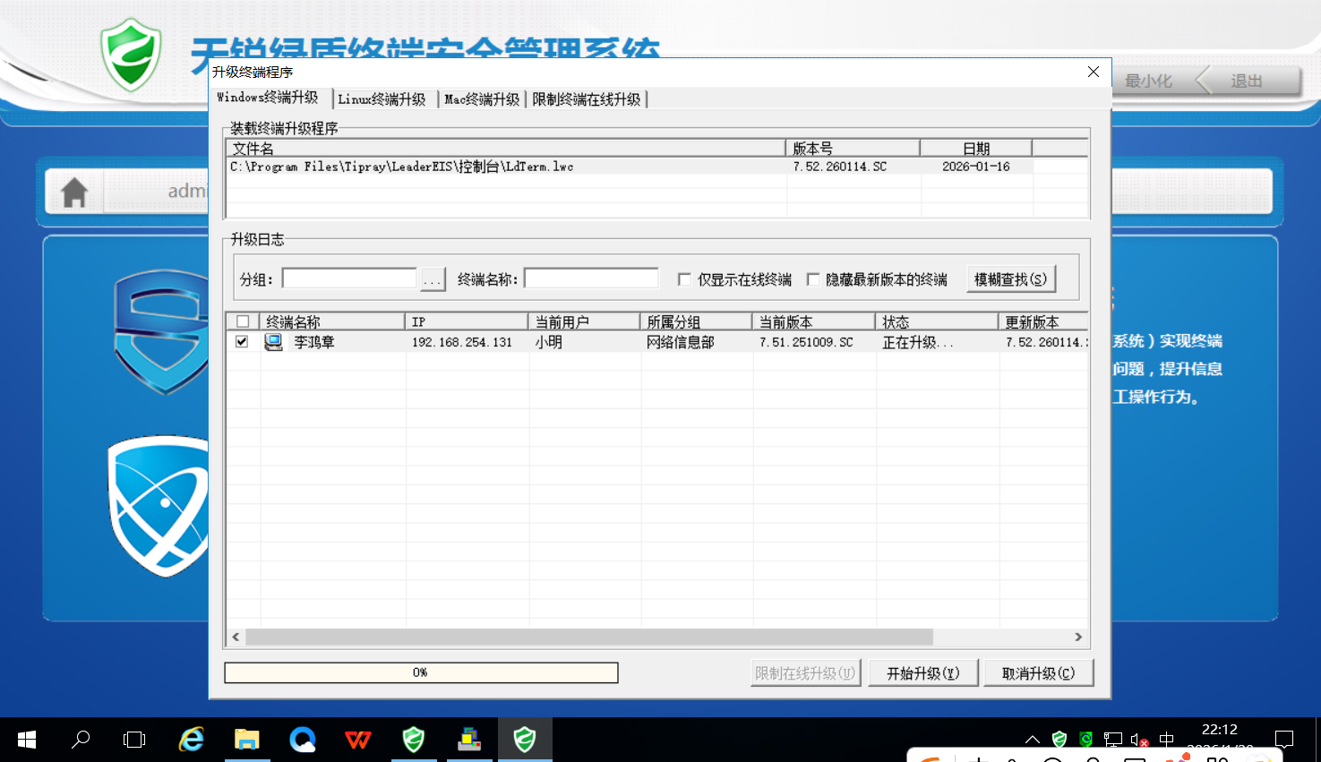 27.新增服务管控功能 28.支持同步飞书组织架构以及飞书扫码登录 29.规则中心-截屏限制,增加禁止部分程序截屏 30.终端支持告警记录查询优化功能: 1.文件操作记录支持把被删除的文件备份到文件服务器 2.优化和科学上网软件、VPN软件的兼容,网络相关功能能够在科学上网、VPN软件环境下正常使用 3.支持最新版钉钉(8.2版本)审计 4.应用软件收集优化,支持设置收集规则 5.程序访问限制新增支持针对进程设置是否禁止/是否告警 6.MTP限制功能的优化,解决误限制的问题 7.管理员权限分配支持对终端模块的分配权限单独授权 8.屏幕水印支持显示终端的编号 9.告警模板库支持修改告警信息 10.软硬件资产支持同时导出软件、硬件资产 11.优化软件安装包限制功能,解决之前msi无法区分限制问题 12.服务器白名单支持压缩包穿透解密 13.支持ARM浏览器审计 14.优化管理员登录服务器认证、管理员密保设置流程