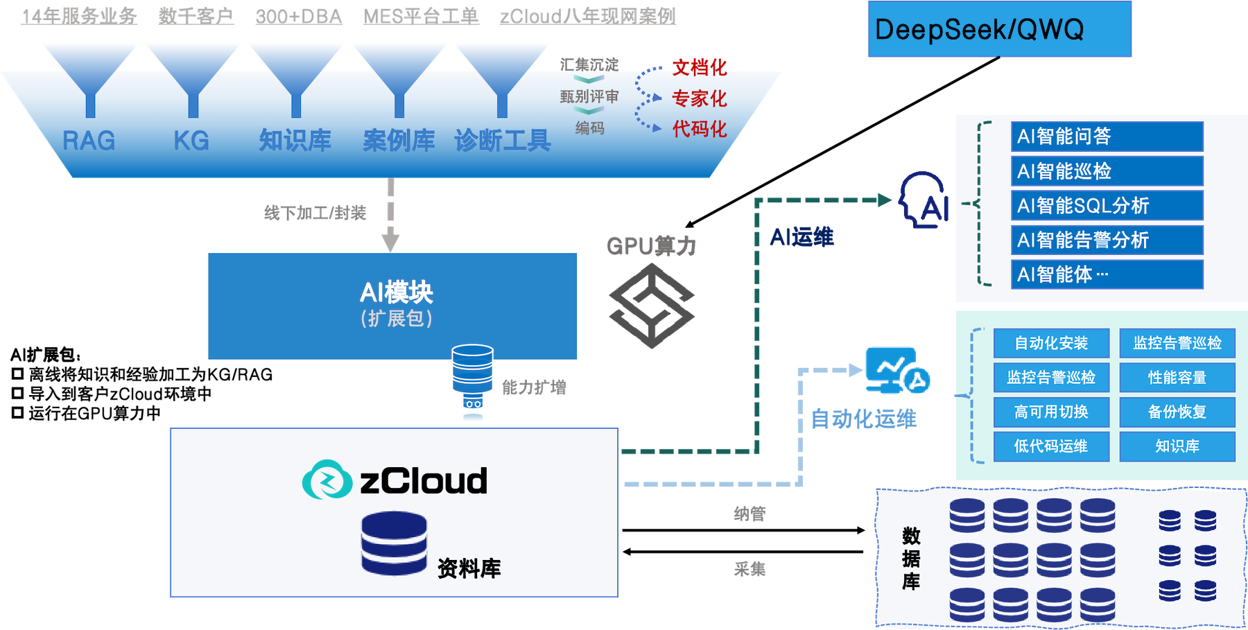 如果说SQL审核是坚实的盾,那么zCloud的"智能化运维"则是灵动的魂。zCloud通过"AI智能体"技术将管理效能推向了4.0智能化阶段,这也是zCloud在本案例中最具突破性的技术实践。