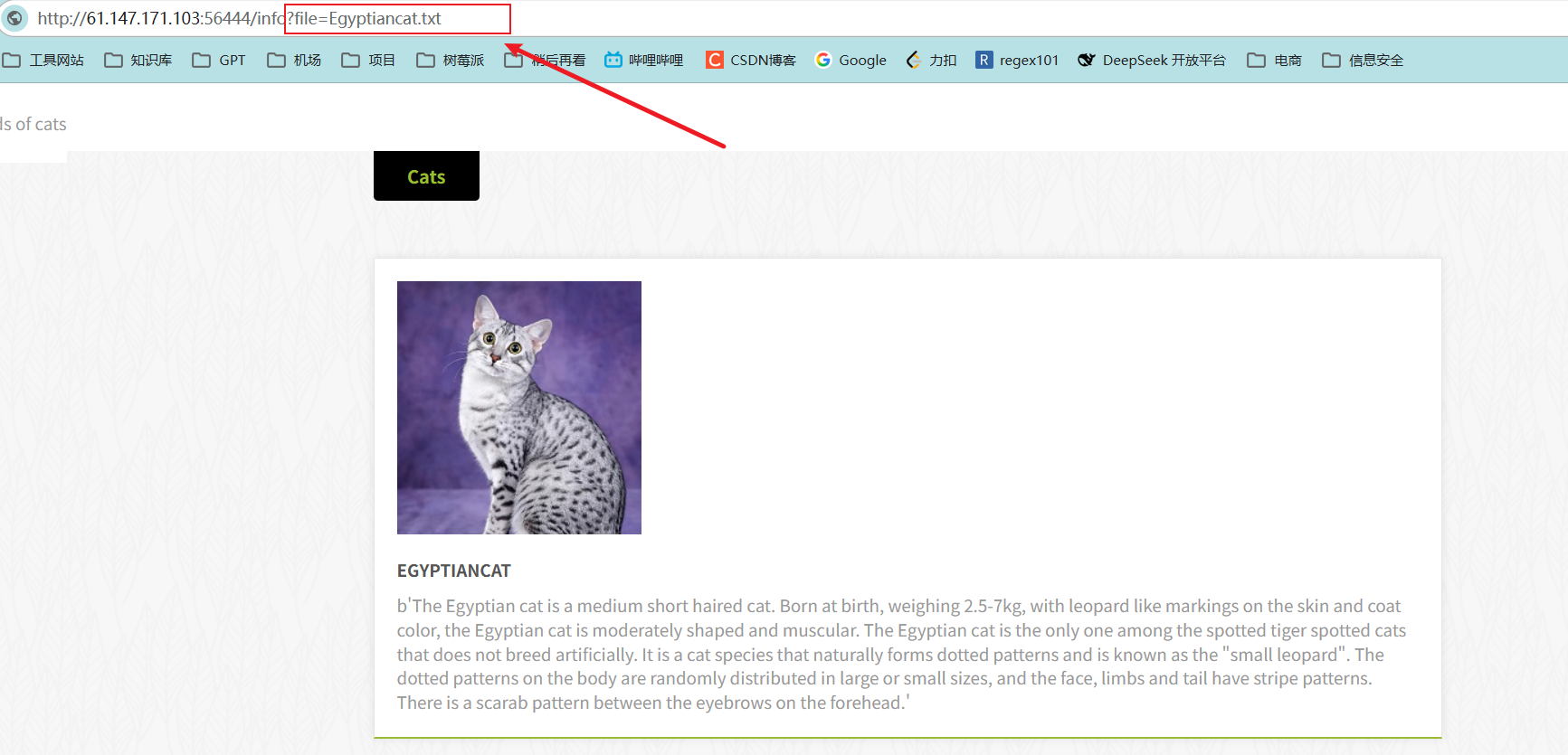 经过一番点击后,发现可能有文件包含的漏洞,如下: