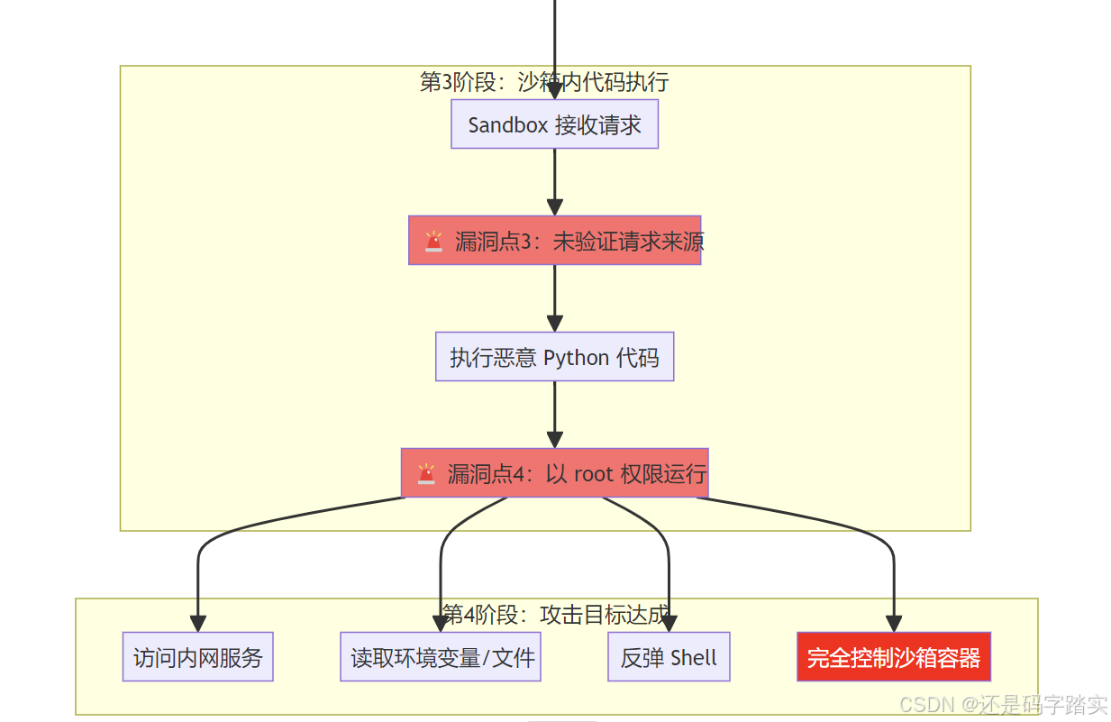 - 缺少网络隔离:沙箱容器可以直接访问内网服务