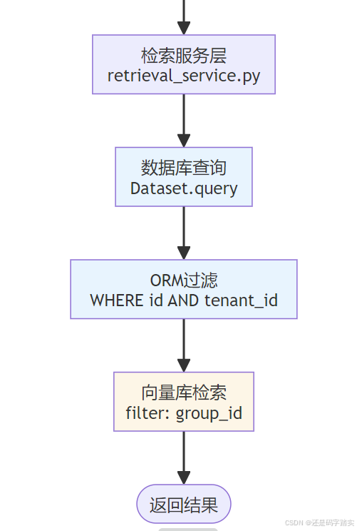 login.py的current_account_with_tenant)中获取当前租户 ID,所有 ORM 查询都必须包含WHERE tenant_id = X条件。在代码审查阶段使用 AST 静态分析工具检测是否有遗漏。 - 向量库逻辑隔离 :在 Qdrant/Milvus 等向量数据库中,为每条向量插入时打上 group_id (映射到 dataset_id),查询时通过