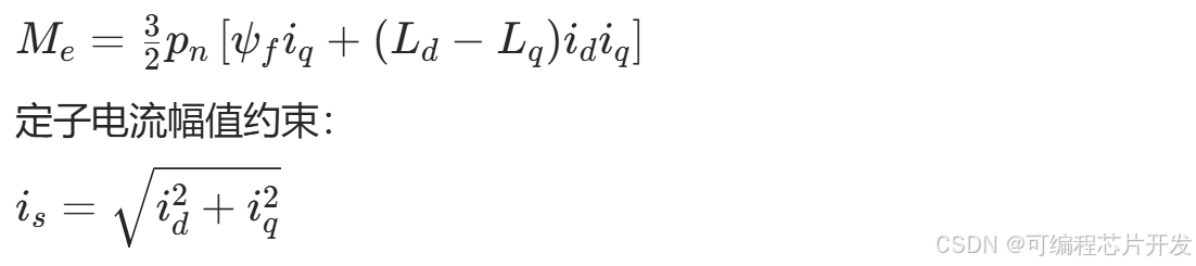 其中pn为极对数,ψf为永磁体磁链,Ld、Lq为d、q轴电感(内置式PMSM满足Ld<Lq)。