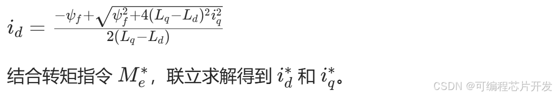 MTPA最大转矩电流比控制策略根据电磁转矩指令Me∗,计算满足"转矩最大、电流最小"的d轴、q轴电流指令id∗、iq∗。