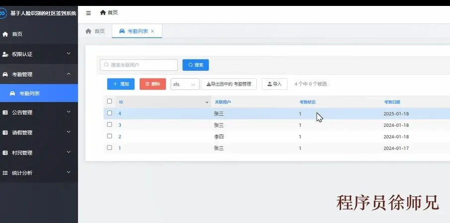 Python基于人脸识别的社区签到系统,以 Python 作为核心开发语言,采用Django框架搭建整体业务与管理后台,有效减少重复开发工作;数据层使用主流关系型数据库MySQL进行存储与管理;在人脸识别能力方面,引入开源OpenCV技术实现人脸采集、检测与识别等关键流程。系统采用"前台+后台"的架构模式。前台面向村民等普通用户,提供注册登录、人脸信息录入、签到等功能,操作便捷、流程清晰。相较于传统人工签到方式,该系统能够显著提升村委会的管理效率,避免逐一手工登记带来的耗时与差错;同时,签到数据以数字化方式长期保存,便于查询追溯,也更利于监管与监督。