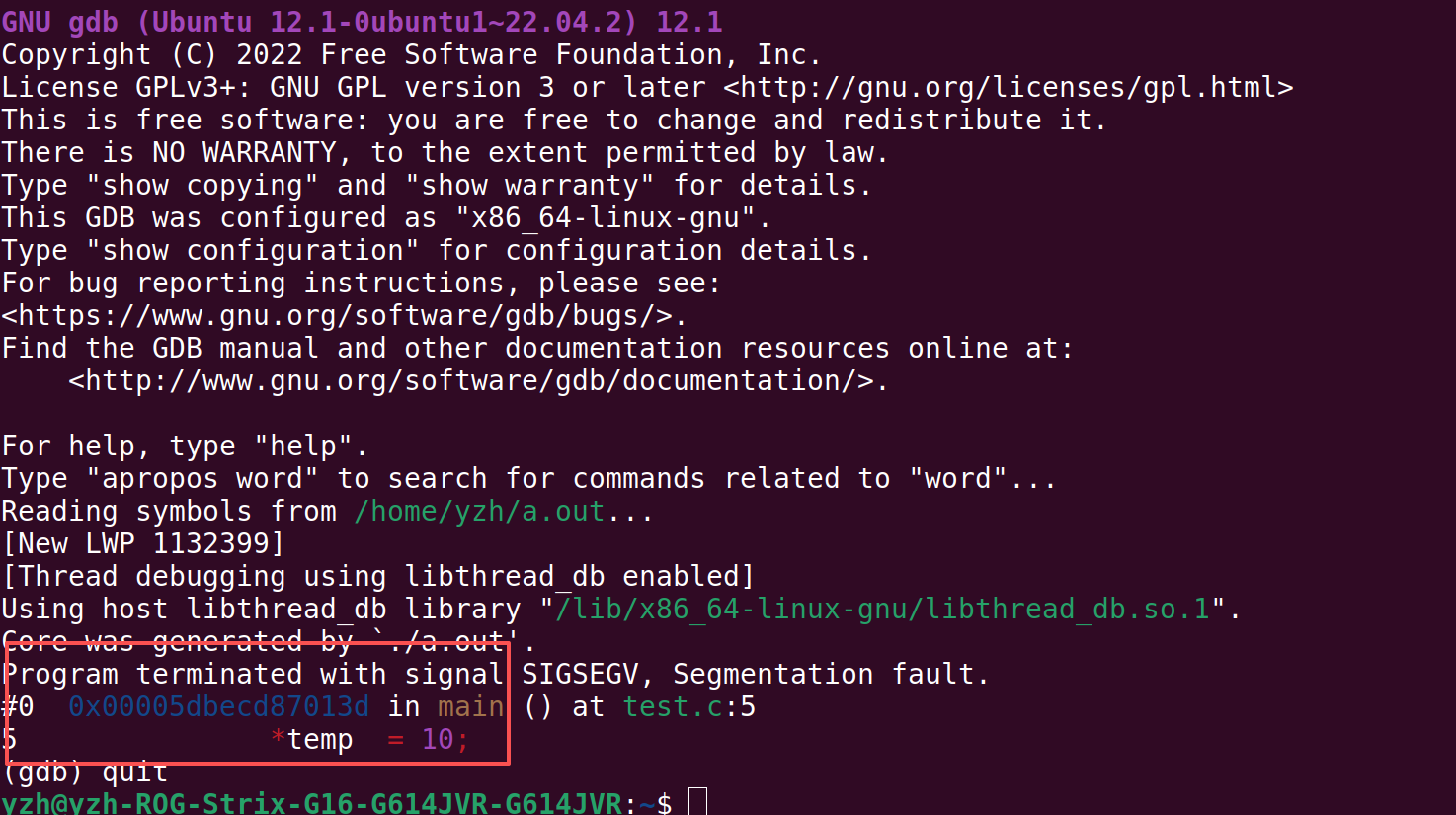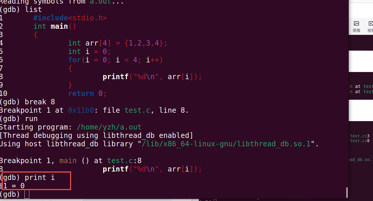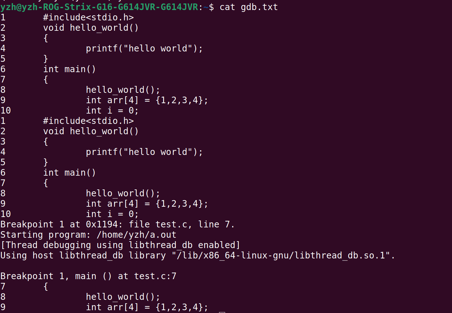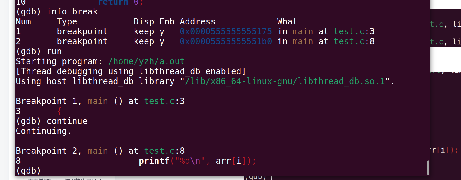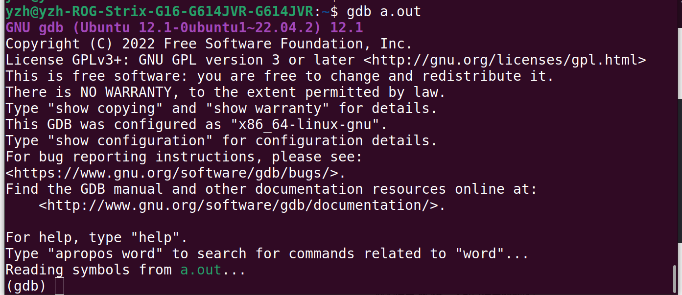 gdb a.out