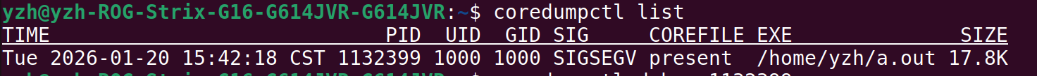 之后下载coredumpctl