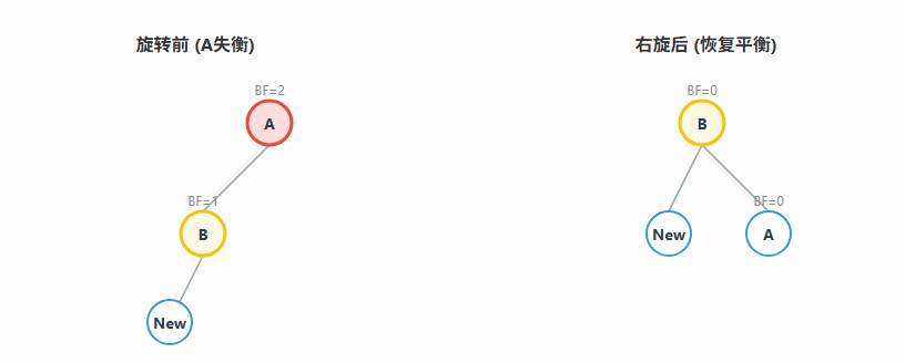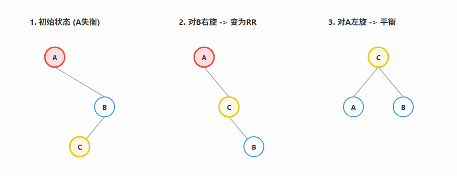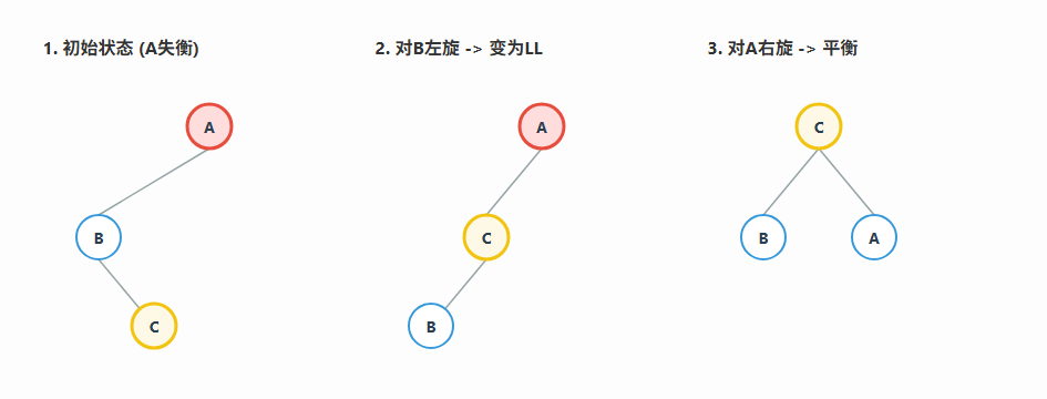 print(f"检测到 LR 型不平衡,在节点 {node.left.val} 处先左旋,再在节点 {node.val} 处右旋")