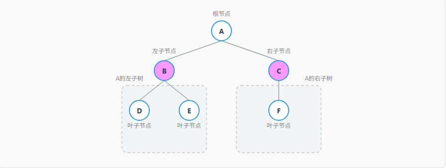 | 根节点 | 树的顶部节点,没有父节点 | 上图中的节点A |