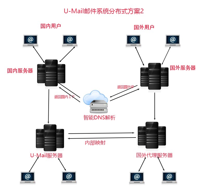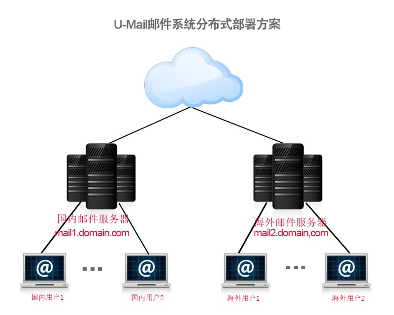 U-Mail为客户提供了2种分布式邮件系统方案,客户可以根据需求选择: