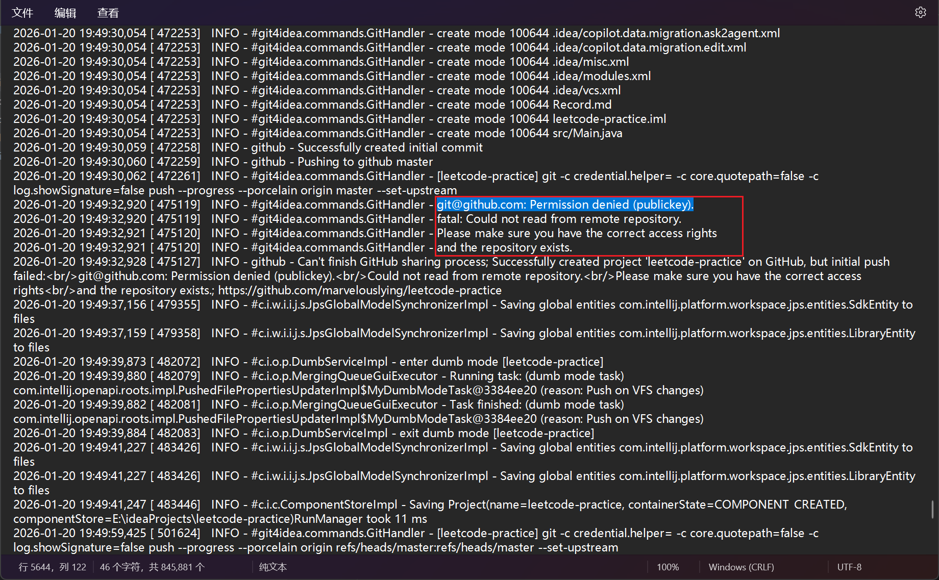 查阅资料,发现是IDEA没有访问GitHub远程仓库的权限,也就是没有公钥。
