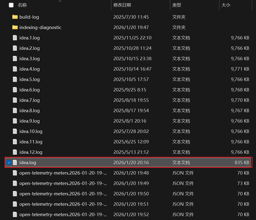 由于成功完成链接之后,IDEA挤兑掉了原报错信息,因此根据以下操作找到报错日志