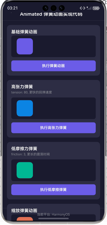 在OpenHarmony上,弹簧动画的优势尤为明显: