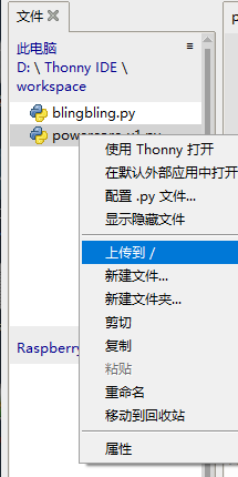 这样上传了没有用.因为pico是上电后检查有没有main.py 有的话就运行,如果复杂项目有多个.py这样上传很方便,如果只有一个,直接另存为到pico然后命名为main.py,这样下次上电就会直接运行你的代码