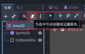 - 选中子弹的根节点,给子弹场景添加脚本代码