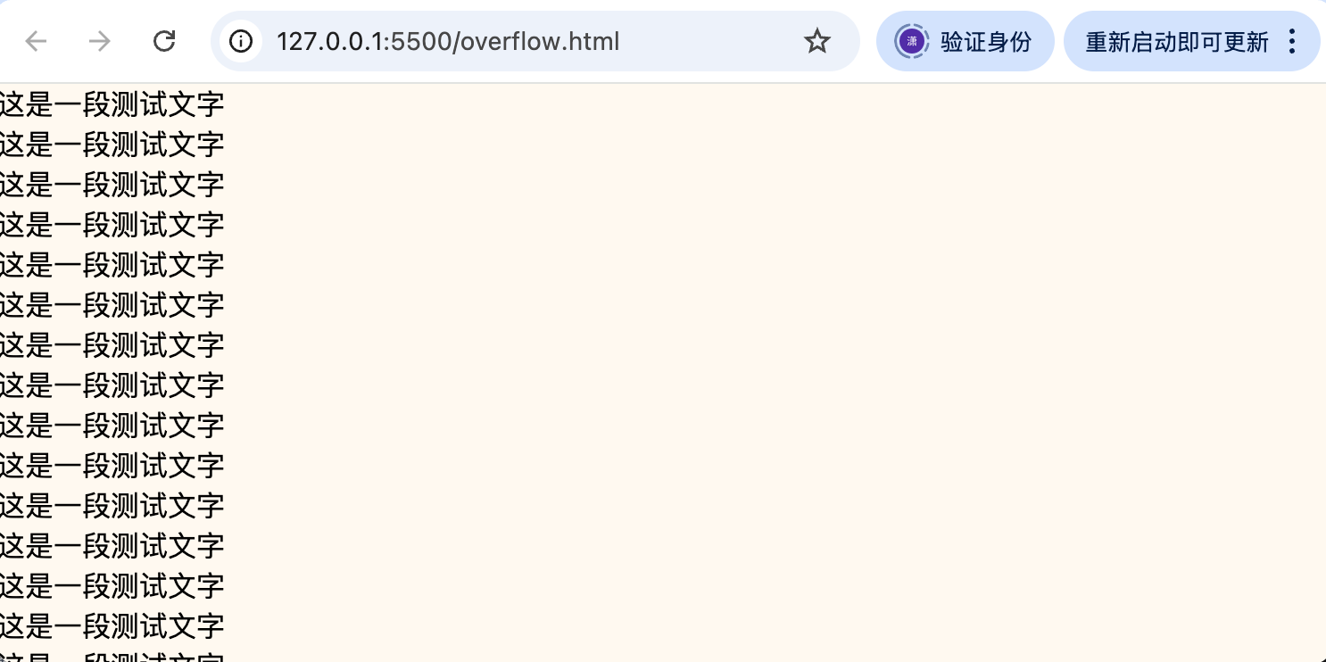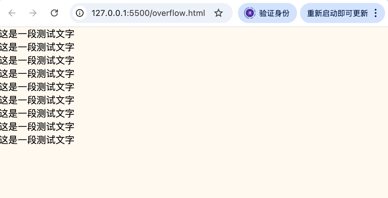 - 当前容器是 height:100vh,默认的 overflow:visable,不会显示滚动条