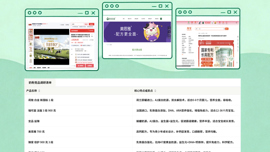 根据奶粉产品清单补充产品调研信息