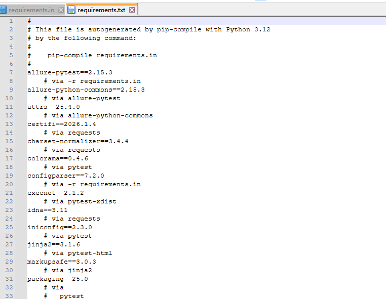 pip-tools 是一个强大的依赖管理工具,它通过分离"高层需求"(你想要什么)和"底层锁定"(具体安装哪个版本),帮助你生成精确且兼容的依赖列表。
