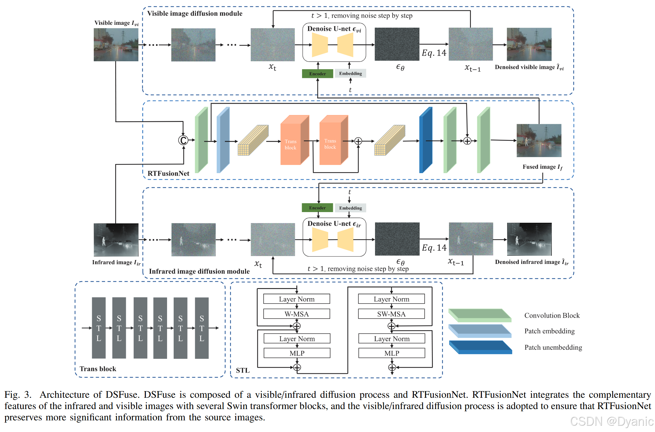 我们采用双扩散框架以确保融合图像包含多模态图像的关键特征。图 3 展示了 DSFuse 的整体结构,
