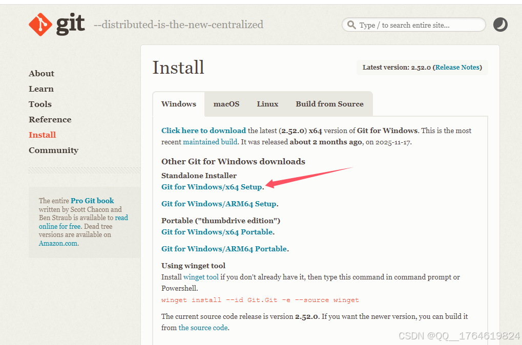 或者进入Git官网,并选择适合自己系统的版本,我的电脑是x64,直接单击下载。
