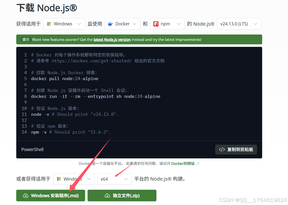 点击直接下载 Windows系统 Node.js(官方LTS版)(推荐)