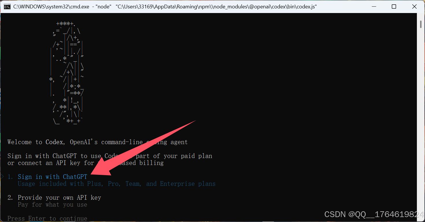 直接在终端输入codex即可,第一次回进入登录界面: