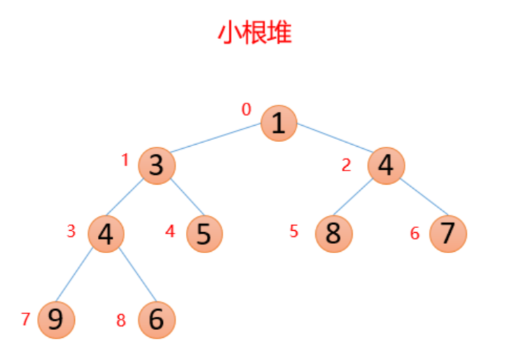 小根堆:Ki≤K2i+1Ki≤K2i+1 且 Ki≤K2i+2Ki≤K2i+2