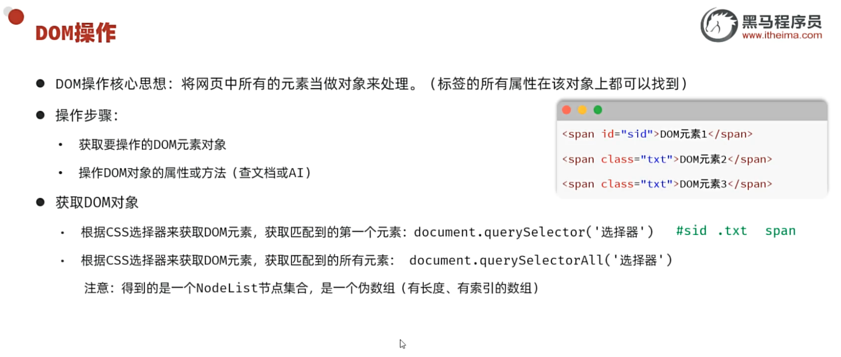 // 2. DOM(文档对象模型) - 操作HTML和CSS