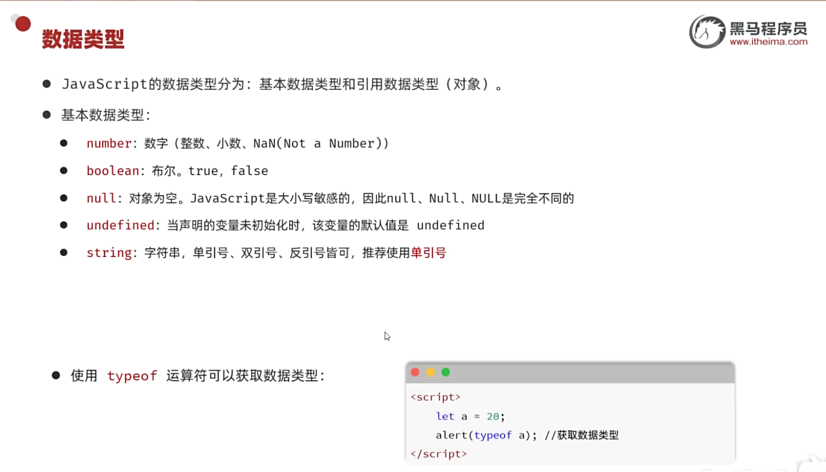 // 2. let (ES6引入,推荐使用)