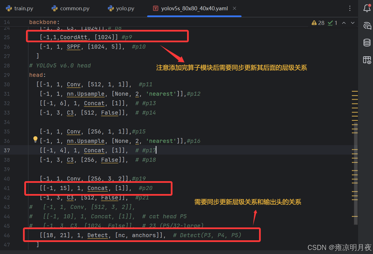 3.在需要执行的yolov5s_80x80_40x40.yaml文件中添加算子且更新其层级关系