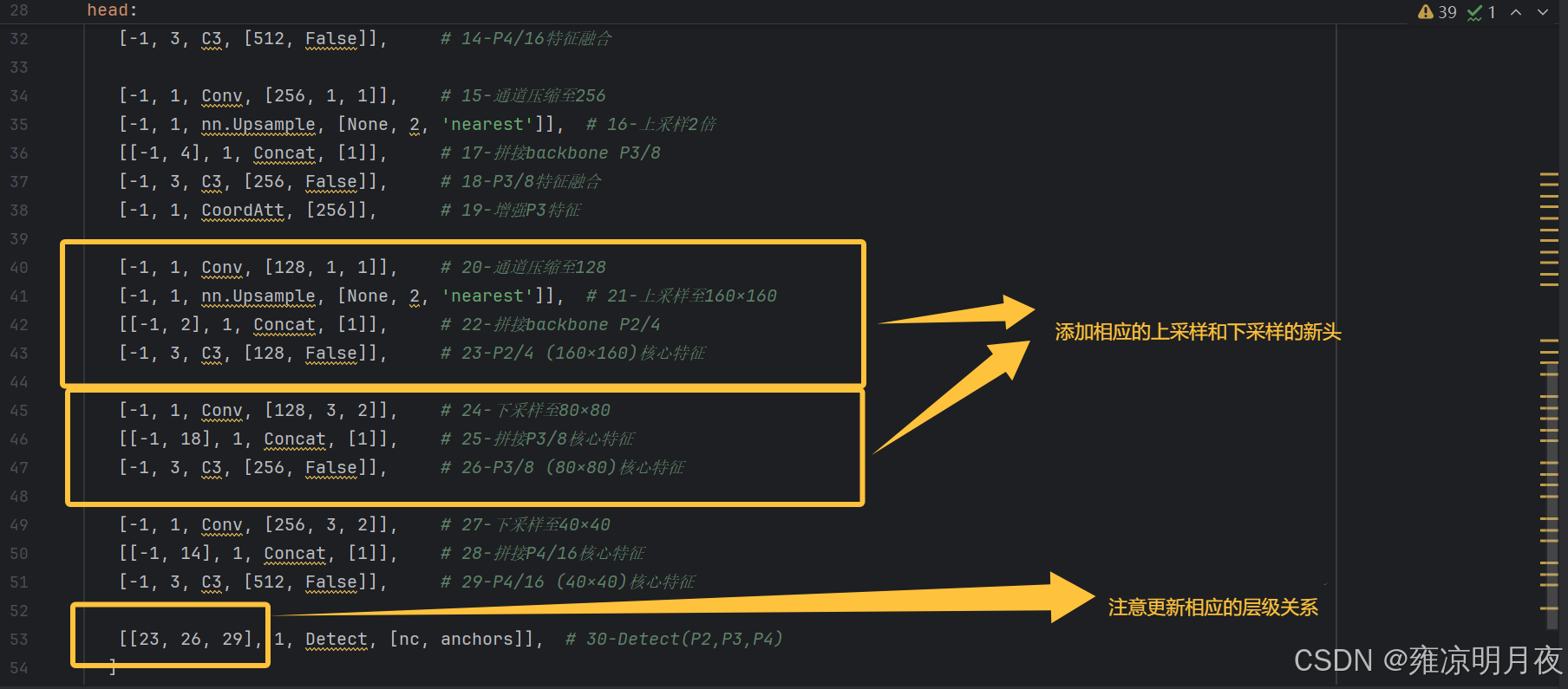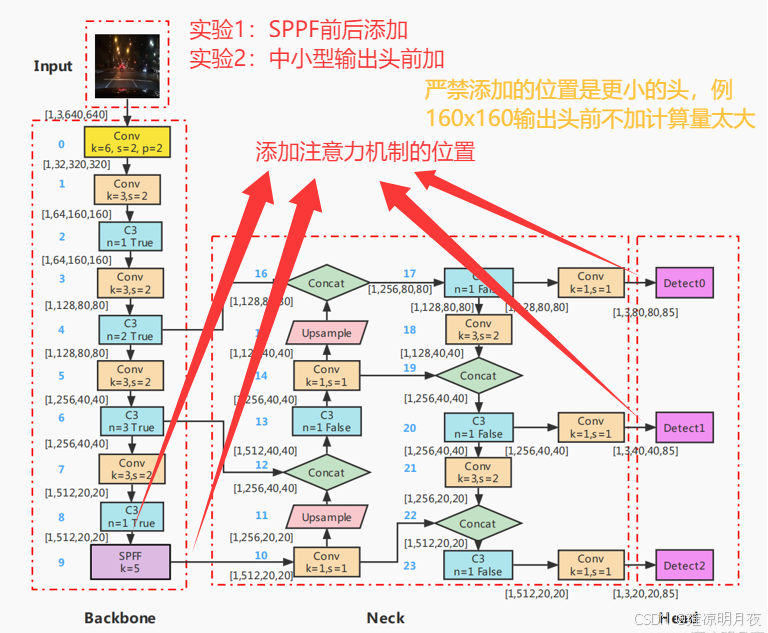 [[23,26,29], 1, Detect, ...]对应 160/80/40×40 三头);- ✅ 易错点:Concat 拼接时需选 C3 输出的核心特征层,而非注意力层等增强层。
