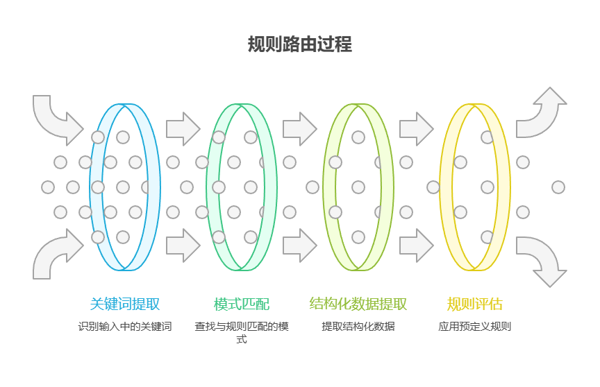 - 规则路由(Rule-based Routing):基于关键词、模式或从输入中提取的结构化数据,使用预定义规则或逻辑(如 if-else 语句、switch 语句)进行决策。此方法比大模型路由更快速且具有确定性,但在处理复杂语境或新颖输入时灵活性较低。