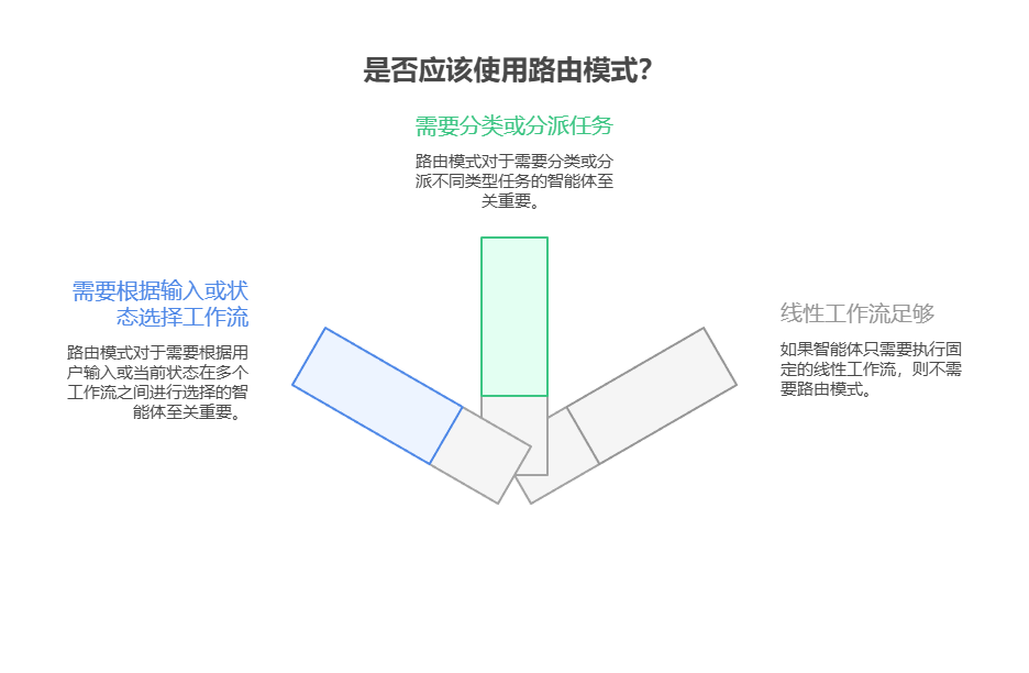 路由模式是构建真正动态且能响应变化的智能体系统的关键环节。通过实施路由,系统得以超越简单的线性执行流程,使智能体能够就如何处理信息、响应用户输入以及使用可用工具或子智能体做出智能决策。