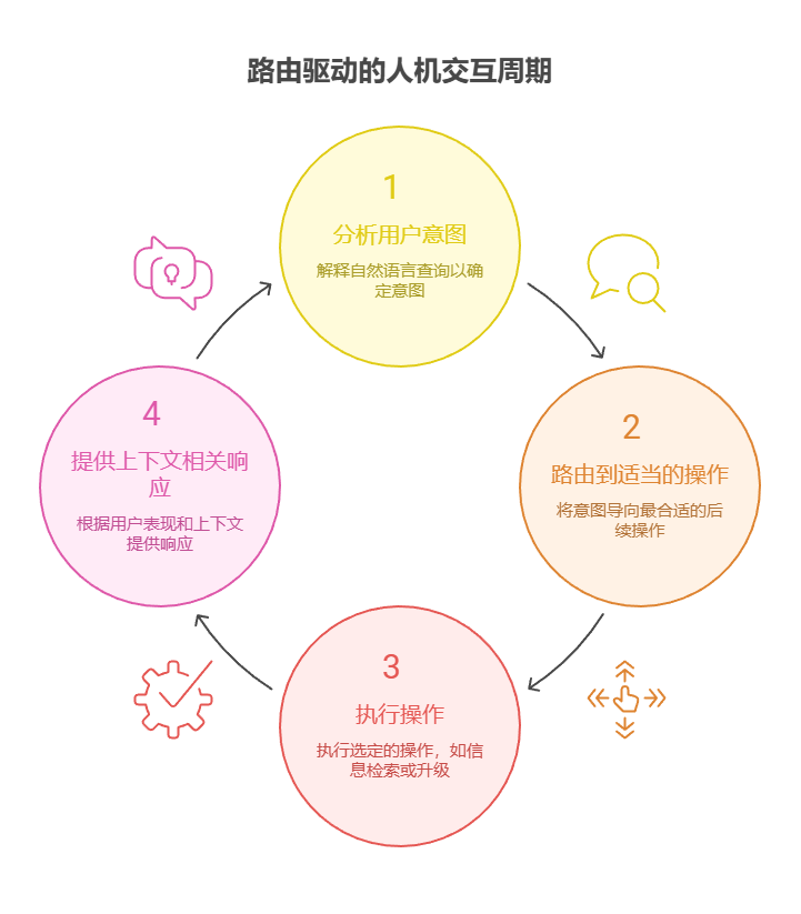 人机交互:在虚拟助手或 AI 驱动的辅导系统等场景中,路由用于解释用户意图。通过对自然语言查询的初步分析,系统可确定最合适的后续操作,无论是调用特定的信息检索工具、升级至人工操作员,还是根据用户表现选择课程中的下一个模块。这使系统能够超越线性对话流程,进行上下文相关的响应。