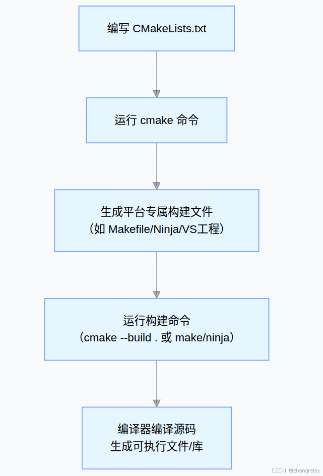 A[编写 CMakeLists.txt] --> B[运行 cmake 命令]