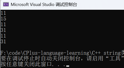 cout << s4.capacity() << endl; //由于上面预留总空间到31,reserve的参数小于31,仍为31