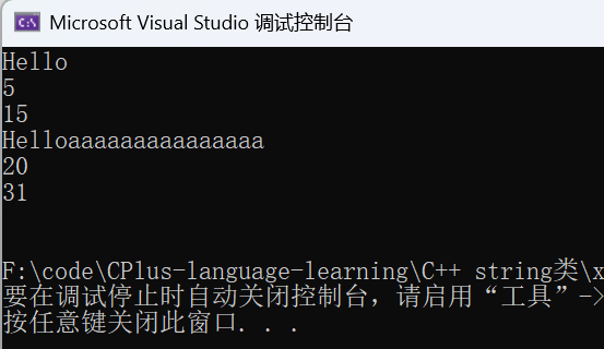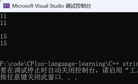 cout << s3.capacity() << endl << endl; //此时底层容量的大小就发生了改变
